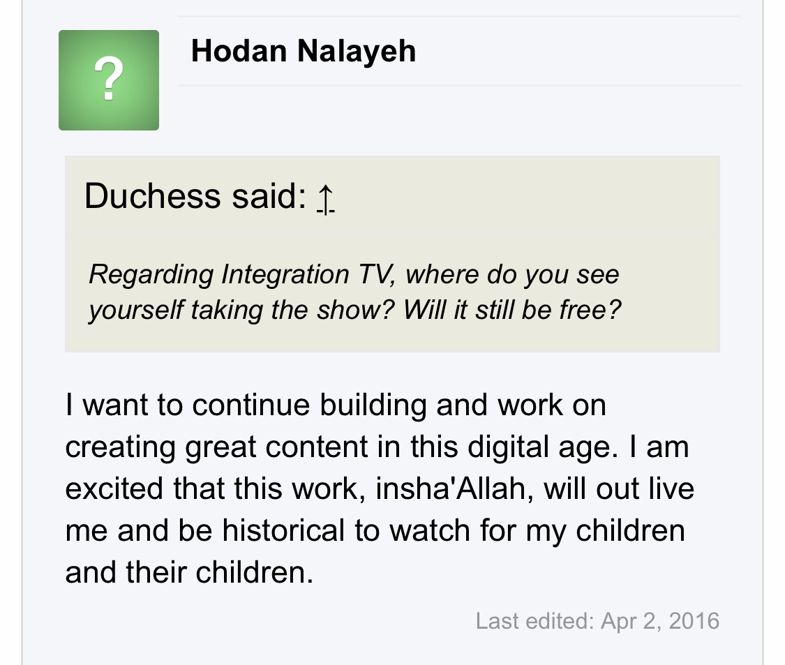 Official I'm Hodan Nalayeh, host of Integration TV -- AMA