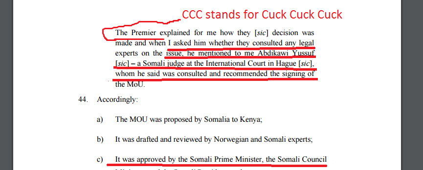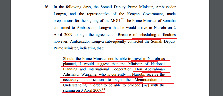 Ok so CCC and Deputy PM Ibbi were supposed to sign the deal, but couldnt make it. They then tell Kenyan officials that Abdirahman Abdishakur , who was in Nairobi at the time and hasn't been involved in drafting the deal, that he would receive the power to authorize the deal. Again, not hearsay bullshit because Kenya has shown receipts as this was a part of the court case.