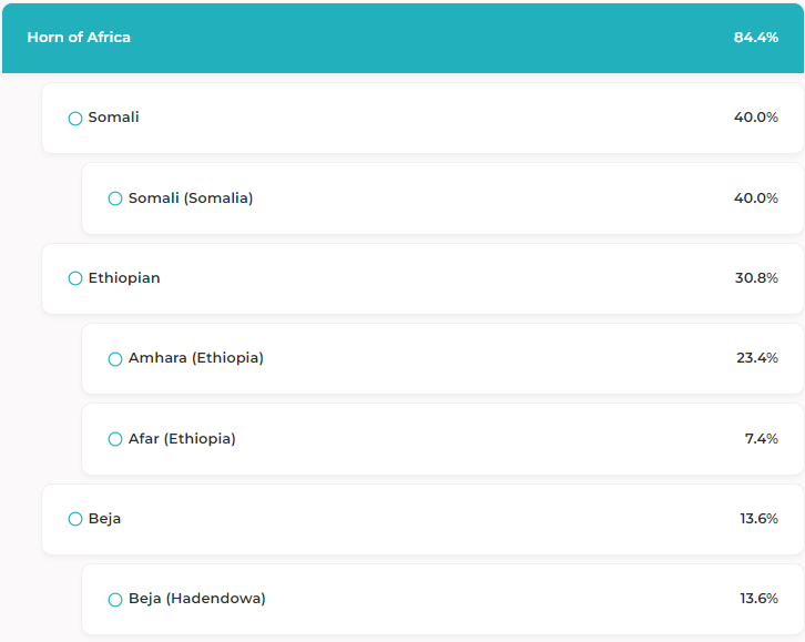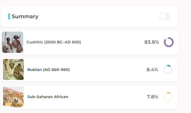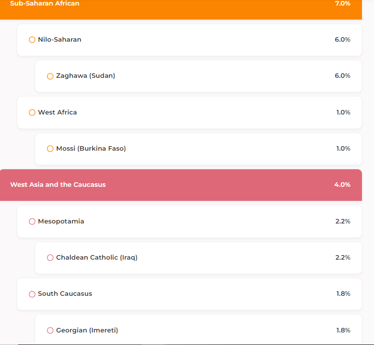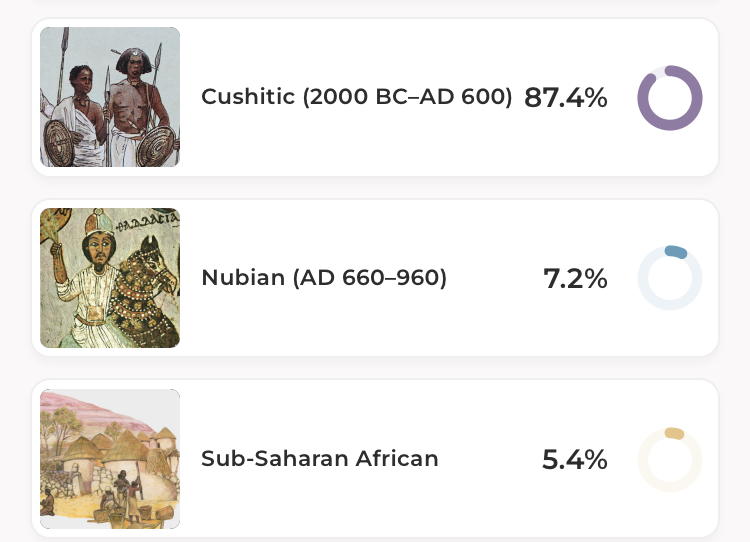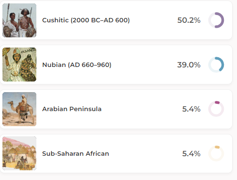 Very similar to mine although you have a tad bit more Nubian and sub saharan