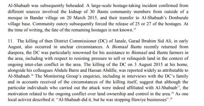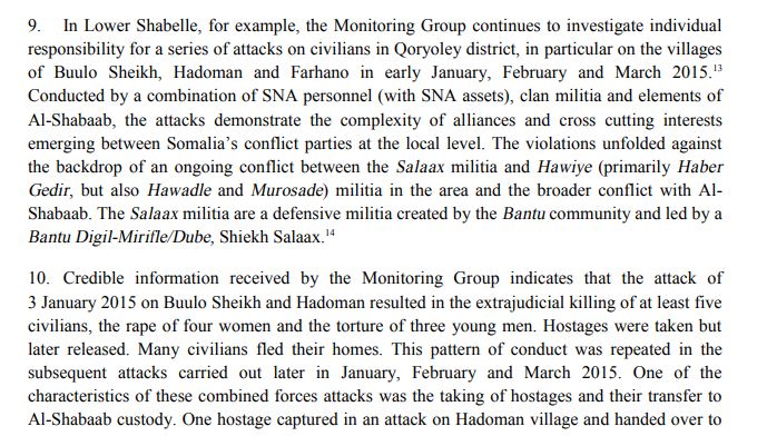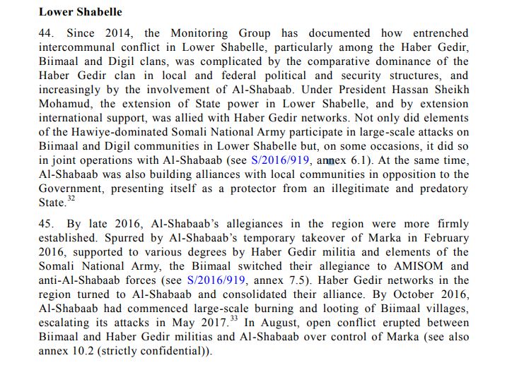 As for Lower Shabelle. It is widely known that AS were responsible for the harm inflicted on Biimaal after they refused to stop waging war but so have other clans such as the Habar Gidir and Cawramale below who refused their authority in areas where AS have influence. AS do not discriminate when they have power, it is their way or the highway.
