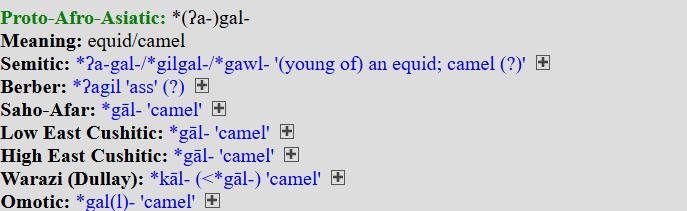 You keep on doing this over and over again and it's quite funny ngl. But how come you always assume the somali word is the main cushitic cognate and not an innovation ? So far no thorough lists of inter cushitic cognates were released if i'm not mistaken, and the whole family is still a big question mark regarding its inter classification. This one looks convincing but the rest is laughable.