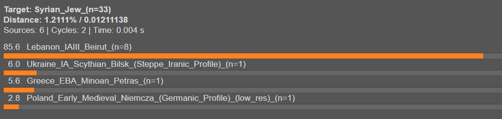 @The alchemist I would disagree with you both that the overall Levantine ancestry in them is definitely over 50%. Even arguably as much as 60%. It's just dubious how much of that is actually Jewish and how much is Greco-Roman stuff that is also very Levant admixed.