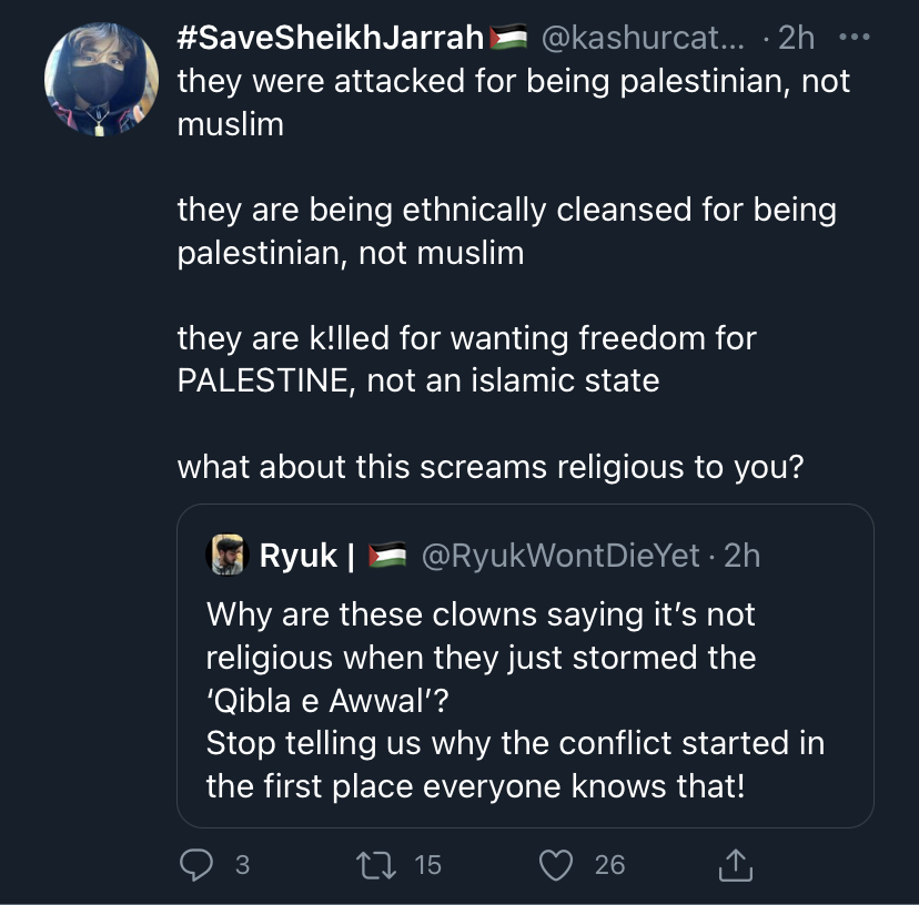 I’m seeing so many Palestinian females trying to dissociate from Islam and make it more of an Arab nationalist/secular cause. A huge slap in the face to the majority Muslim countries who side with Palestine solely on the basis of religion