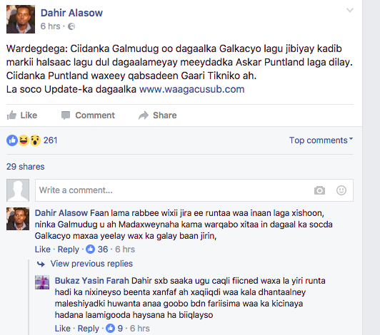 Their biggest propagandist alasow admitting on Facebook Galmudug militia got destroyed