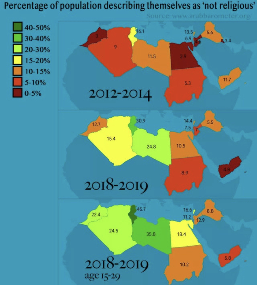 That data is not strong enough to make me believe that Islam in majority Muslim countries will disappear soon.