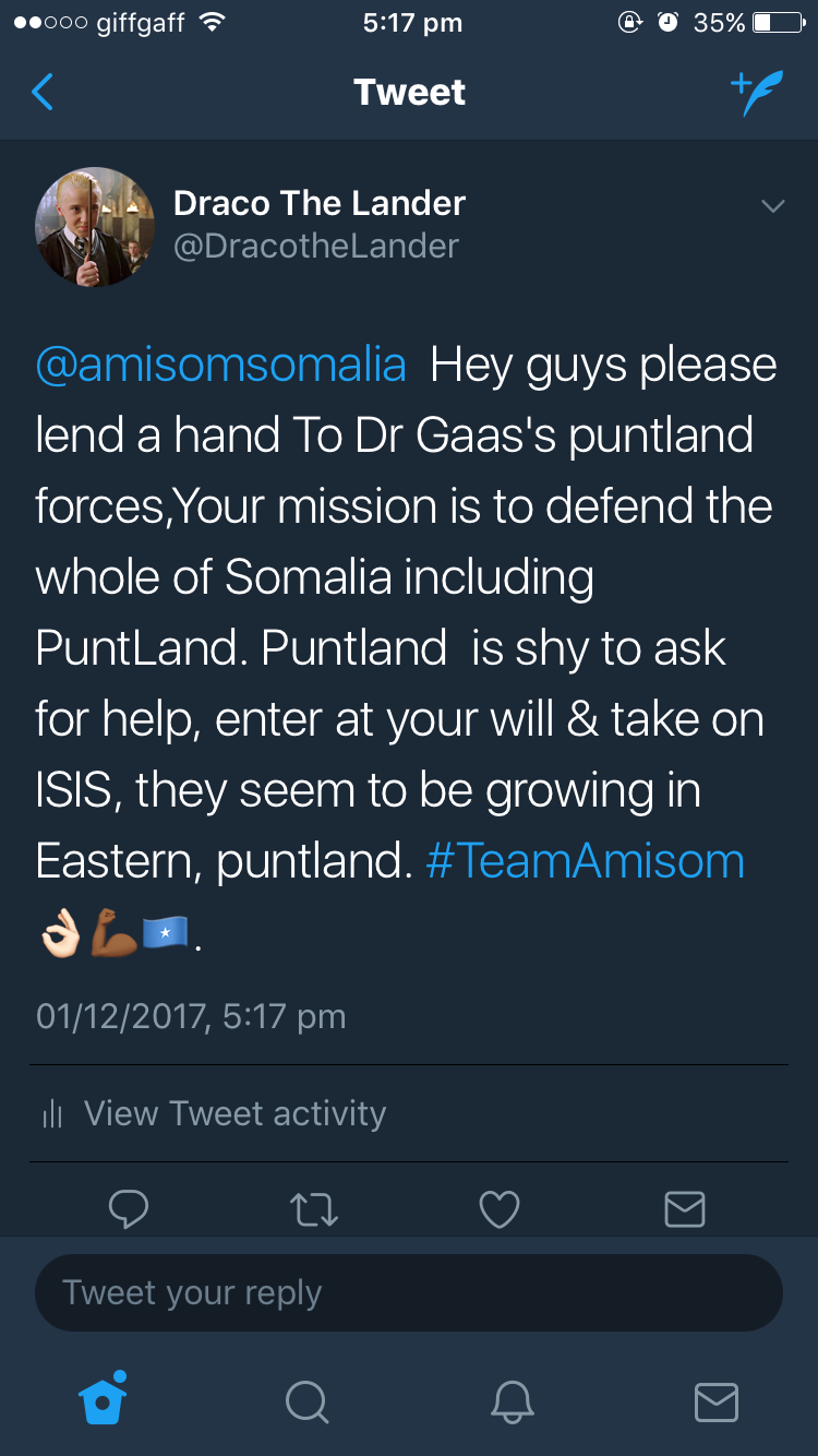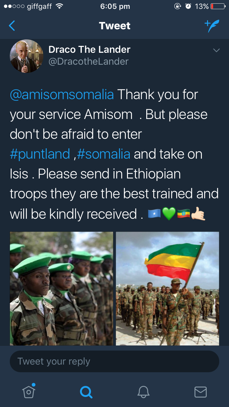 My view to fix this dangerous Isis fighters is call in Amisom for a few months , before they leave.