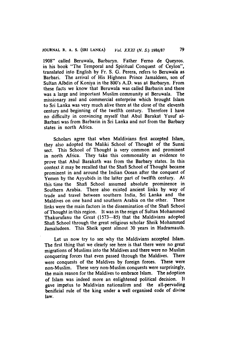 With regards to the Maldives, I must say that the author puts across a very convincing argument. I have one problem with the theory however, and that is who converted the Maldives to the Maliki school because it definitely didn't exist in Sri Lanka. The Maliki madhab throughout history has been present in the Western part of the Islamic world in places like North and West Africa as well as Sicily. So if the Maldives was Maliki back then, it has to come from someone in this region, thus giving the edge to Ibn Batutas theory of a Moroccan converter.