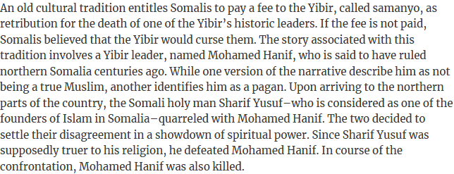 the yibir are not saab. they are considered saab today because they group them alongside the aleey and the madhibaan but they are not saab or somaali. yibir were the once rulers of hargaisa.