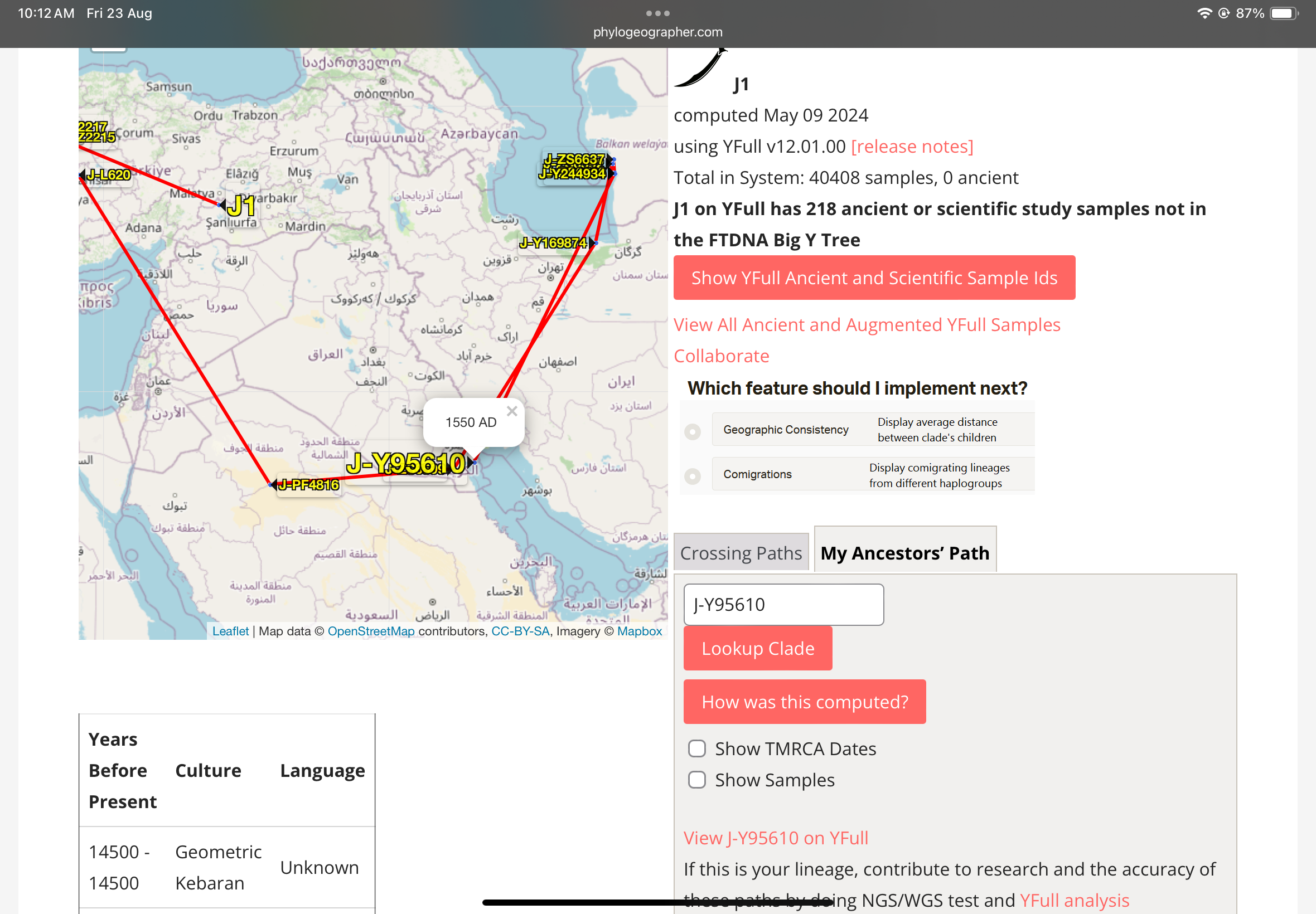 I suggest you do big Y because this cladefinder is not always accurate. Or you could opt for the J1 Yseq panel which is cheaper. It’s what @CulturedKay did to find her exact branch. I would go for big Y instead because it will place you on the tree and you could find out exactly when your ancestors migrated to the horn.It gave me J-Y95610 as you can see below. How accurate is this? I put it on the map and it put it in somewhere in modern day, Kuwait. View attachment 339975View attachment 339976
