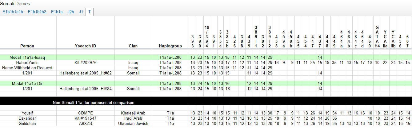 GENETICS Jamaacatul DNA two Somalis took the Full Y-DNA for Haplogroup T