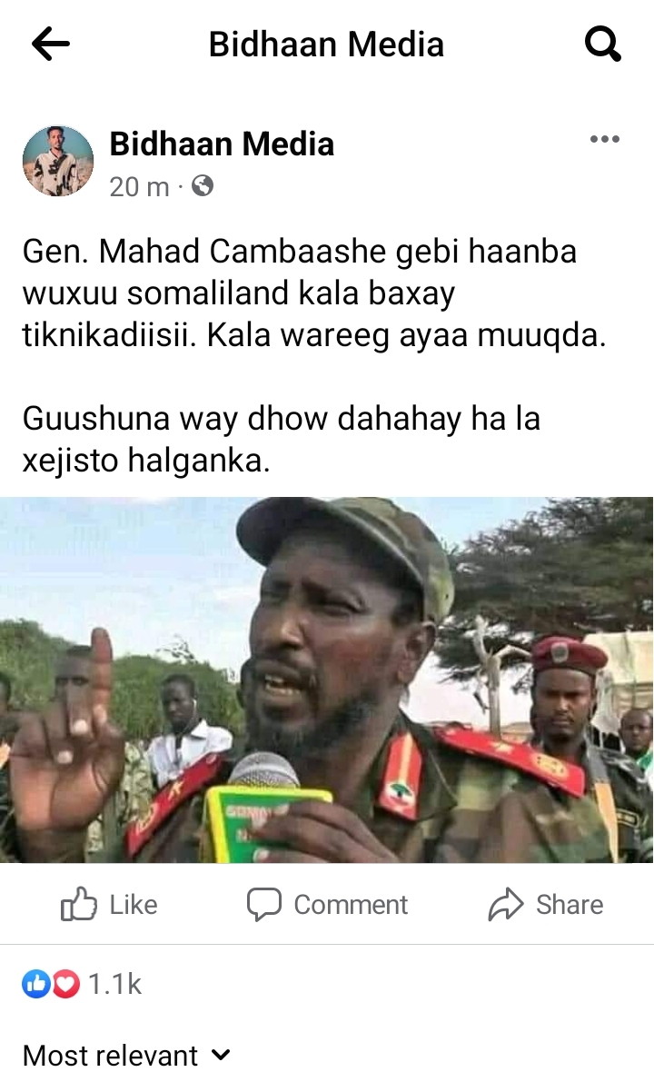 Ruunta sheeg ama iska amuusIt's not Marjeerteen it's Dhulbhante themsleves those who are anti SL are the ones assassinating figures in that community that work in SL's institutions or civil societies like the man that was assassinated couple of days ago was a high ranking member of the main opposition party Waddani branch in Sool region.