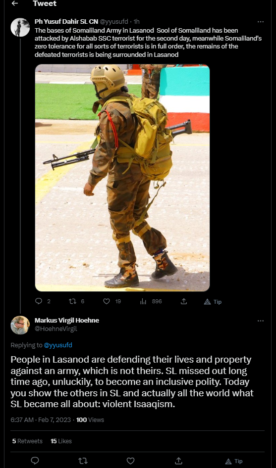 Markus lived in Sool for years while doing research, so he always defends reer Sool.Cadaans are waking up to the truth... all that lobbying for 30+ years gone to waste. Guul Dhulbahante