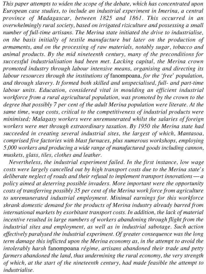 I am assuming the same or similar wage labour set up existed in Benadiri coast alongside slave labour. So i don't see it being difficult transform this into industrialization.