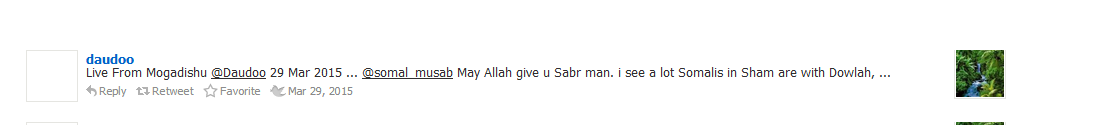 My stance will change once I see a report from the government bringing him in for questions over his connections. Twitter needs to wait for the courtroom to charge him instead of the court of public opinion to deem as fair. Yes, it's their property and they have every right to enforce their own laws but I believe it is unjust over this hysteria in deeming him a sympathizer. I wouldn't be surprised if a somali media rep with a small follower account wanted to take him down and used the posh treat mistake to take daudoo out from reporting the news on twitter.