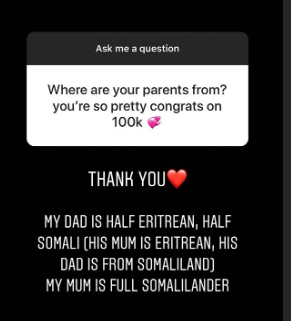 Why did i think her dad was fully habesha when in fact hes fully somali his mother being eritrean isnt counted since her father has qabil lol this girl is isaaq. Somaliland greatest asset i guess loool