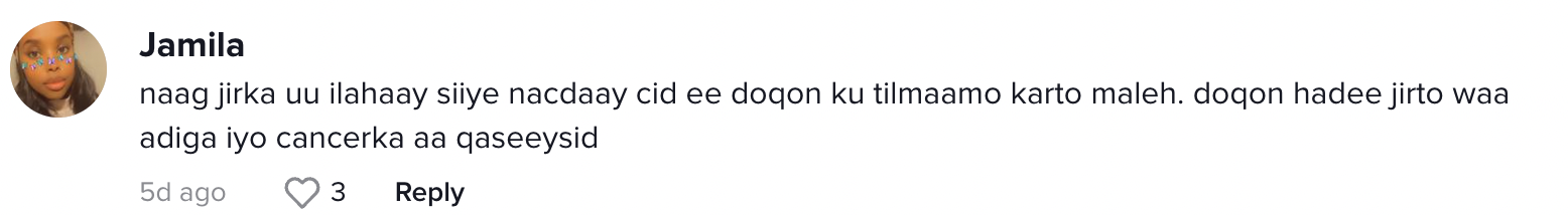 When I went to Xamar almost all of my female cousins and their friends were bleaching their skin. They even tried to get me to do it but I refused. It doesnβt seem to be as big of a problem outside the city because in Baidoa i didnβt meet anyone who bleached.