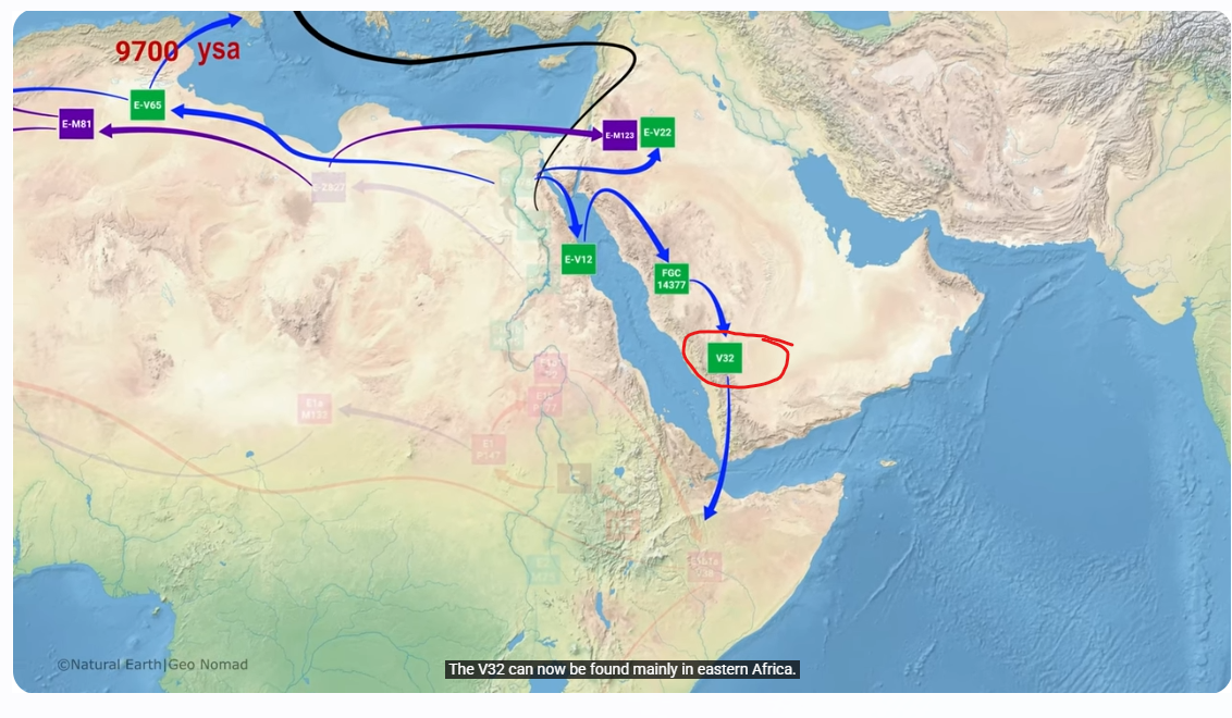 The video suggests that E-V32 , the branch of E-V12 formed about 9700 years ago returned to the Horn Africa region via Arabian peninsula .Baqti darood is myth we are closer to murursade than we are to dhulbahante and warsaangali