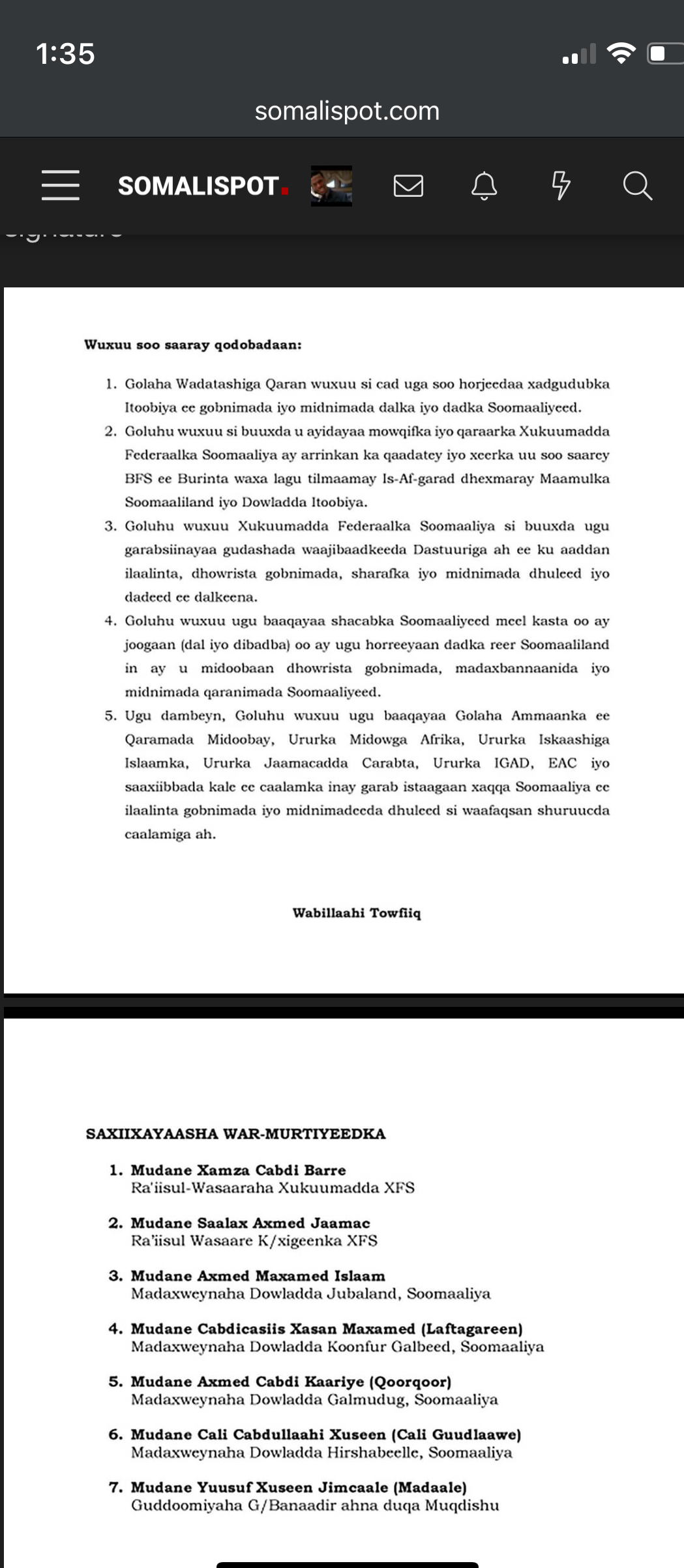 The funny thing is madobe and Laftagaren signed this document saying Ethiopia was trespassing on Somali rights due to somaliland deal. This all the while when they have thousands of Ethiopian and Kenya troops on their land and routinely side with them over fgs. These fms all want to be Somaliland secretly , become state that can tell fgs to F off but they can’t do it with own two nuts