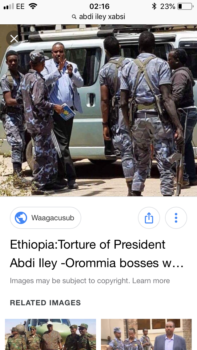 Is that why you were begging for the moderators to ban me dhoqon son of eeedooore kkk tell @Teeri-Alpha why you were against abdi iley qlong with your uncle who is the leader of onlf and today you and the leader of onlf who are reer isaaq support cagjar cause he is reer isaaq ina lillah waa ina illahay eajicuun reer cabdile have become lama ooyan abdi iley is in prison like a slave subhanallahhaa hada ka hor buu kobtan soo dhigay isago gacmaha ka xidhan, oo weliba hospital gown xidhan.