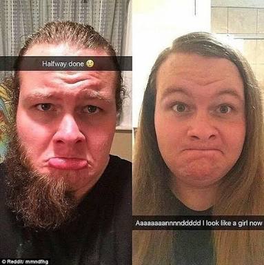U don't get it beard is mine it's not fake....now tell anyone to shave their hair and be bald they look different don't compare my own hair to makeup.....girls are catfishing us i