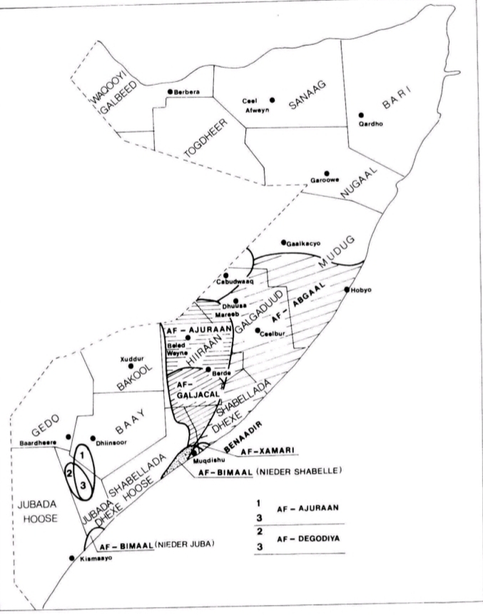 Iβve heard Xawadle and gaaljecel from hiran using words like maandhay, nabe, xaa instead of maxaa etc more so then some wacaysles and coastal wacbudhans. Ofcourse there are small differences but I think reer rural hirshabelle speak closer accents to eachother regardless of clan (excluding most Madowweyne) than muqdishaawis who share a accent with eachother be them abgaal or notThere is no way Af Abgaal (Xayoow) as your map says goes past Hobyo and I'm more than confident that the HG here will back me up. I just said Waceysle in Xarardheere which is before Hobyo speak Mudug dialect. Ceel dheer between Xarardheere is where our dialect ends with Murusade speaking exactly like us and Beelweynta Cayr having influences in their speech.