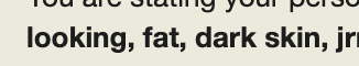 OK I'm done, you wonAs a fat, average looking, dark skin, Madow hair, androphobe, and misandrist, socially akward person I'm allowed to have an opinion