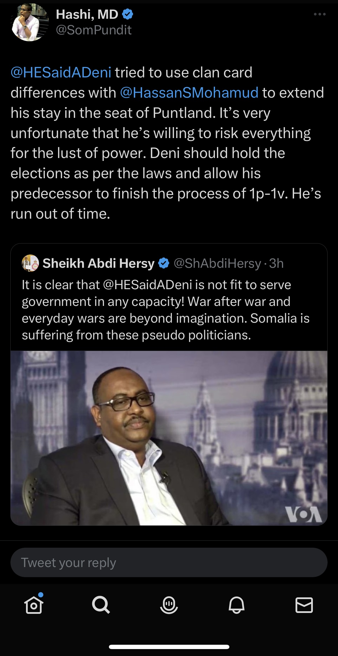 This is between two “puntite” factions, HG/Galmudug are not involved it’s your folk who keep bringing up their name in this thread. @bidenkulaha is just keeping us updated.I see my Galnusian has spread everywhere now. Averghedir is next kkkk