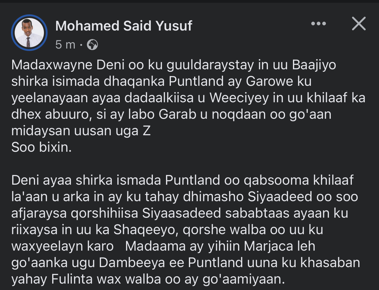 This guy gulled salah is no different than fahimo qooje ex snm horgaal both lookin for attention@Libaax-Joore Former TPEC chair explains deni’s big problem he can’t solve