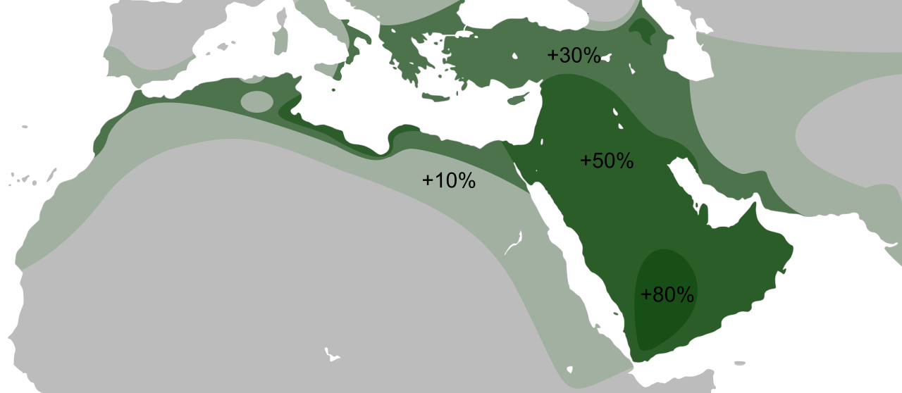 R is even younger but dominates Europe, India, Persia and is larger than T in the Middle East.