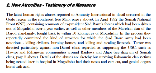 "Details of abuse are sketchy" Nigga I just gave you them.Details of abuses are sketchy. HA, even if barres solldiers did that does not excuse the entire hawiye clans savagery against even the raxanweyne whom you barbarians starved to death. Quit your constant blame and bring security to Mogadishu, that should be your priority instead of whining like children when you realize your dumb clan cannot govern shit.,