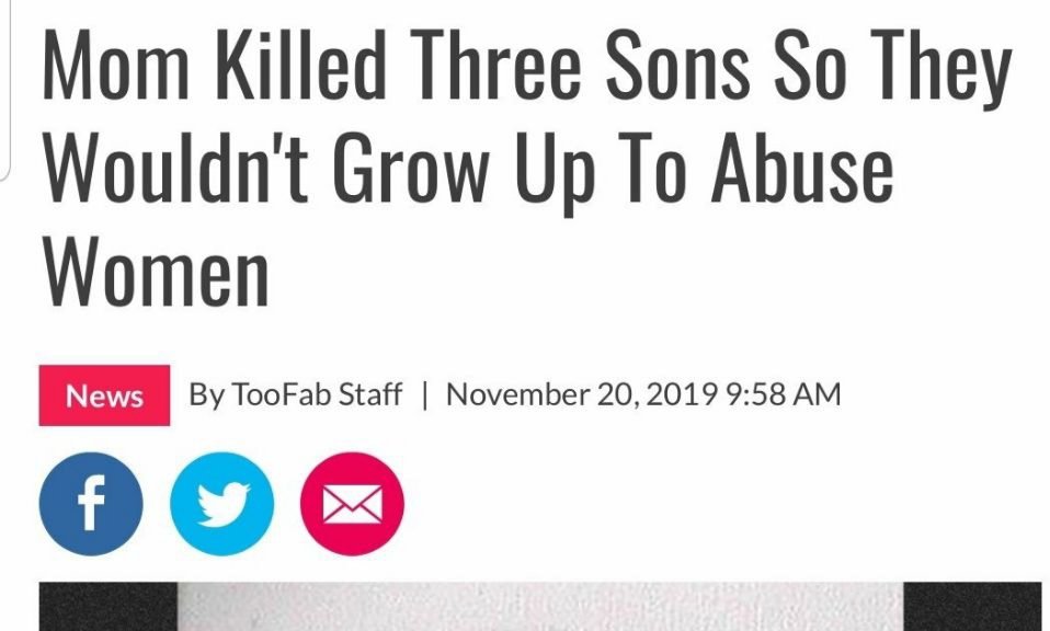 A mum kills her three sons so they later won't abuse women. This is what feminism brings.