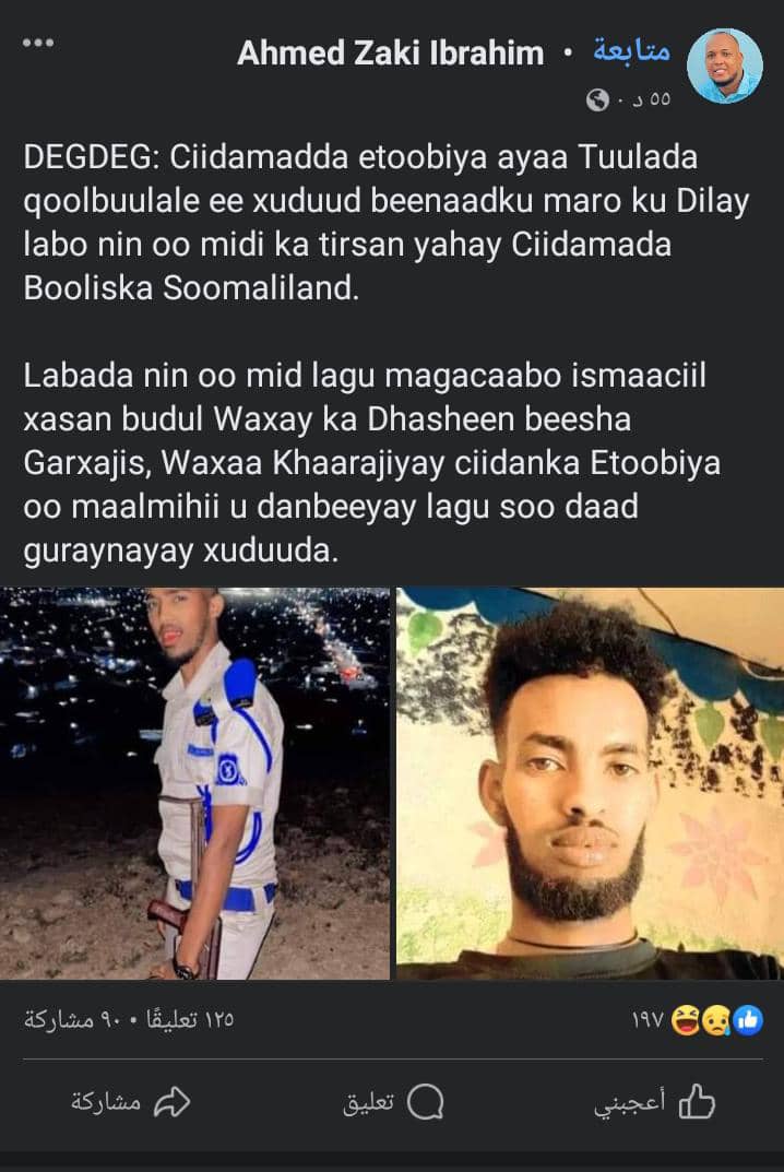 Ethiopian soldiers killed two men in a border village south of Hargeysa
