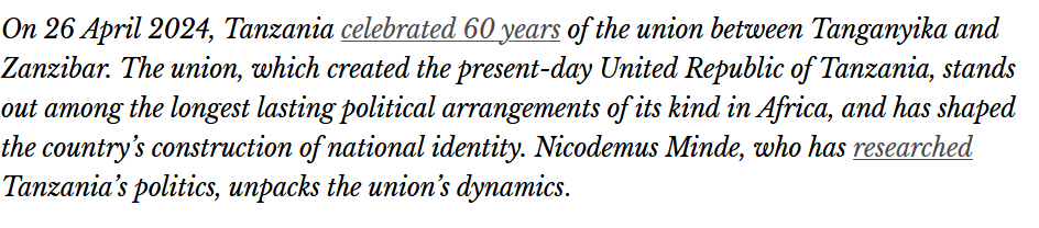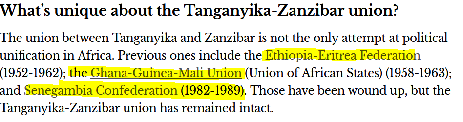 Tanganyika & Zanizibar - Both achieve independence seperately and form a Union to create Tanzania.