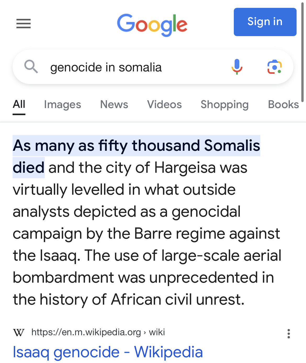 That was horrific as well. I never mentioned SNM genocide bro this is about Isaaq as a clan, innocent people. Thousands of random Isaaq civilians were massacred in 88 from Woqooyi Galbeed to Sanaag and down to Hawd. And you still see people in this very thread calling for the same shit to happen again. How is an Isaaq unionist supposed to feel seeing that waa wax walaan