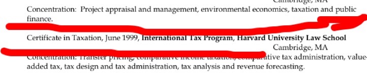 It's MA as in Masters of Public Administration from Harvard Kennedy School in Cambridge, Massachusetts (MA).