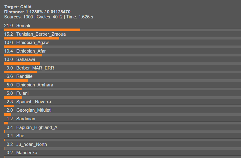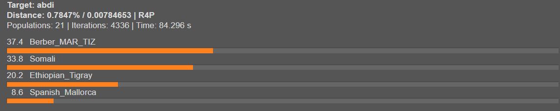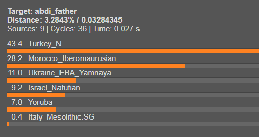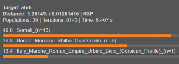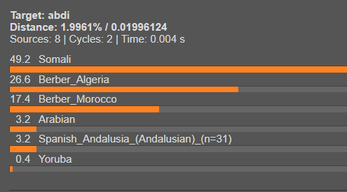 Bro, I did many results to ascertain that. If you take your score and replace the Tigrinya with Somali (since it only takes the Cushitic) or the latest one, you have a nice result. It's between 9-5% of that extra stuff. But besides that you're pretty much an Algerian with Somali mixture.