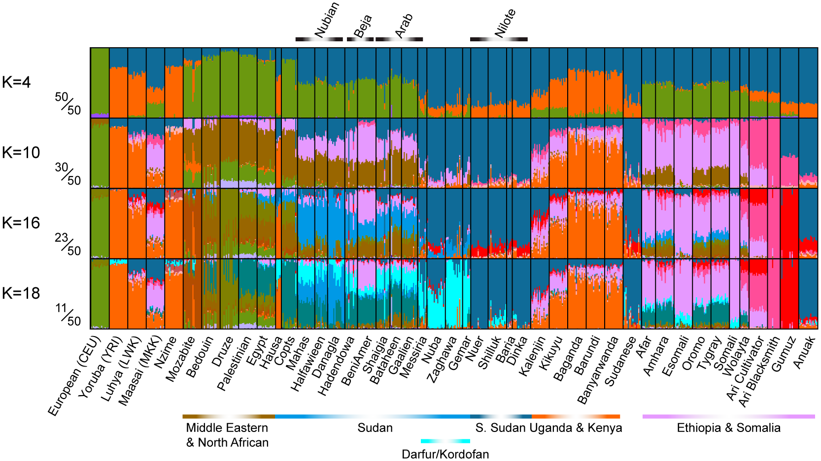 Both Nubians and sudani Arabs cluster closer to cushites like bejas and Ethiopians than Nilotics.
