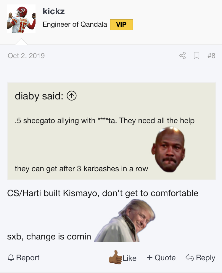 For everyone else this PM will be a failure like the last he is just a nameplate for his clan this admin is too corrupt to be fixed by a PM. The only efficient one you guys had was Kheyre im happy he is gone MucaaradForLife :win: