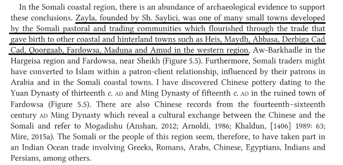 As for anyone mentioning the outdated historians who injected non-Somalis to every Somali achievement has now been overturned. The discovered medieval towns in the hinterland were founded by Somali pastoral and trading communities in order to connect and protect the trading routes that linked with the coastal ports.