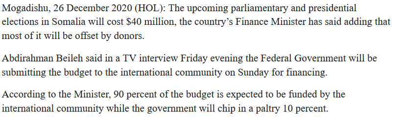 if we just take that 7,8 mio. $, they previously got then it's 36% of the total expenditure for Somaliland Parliament and local election with 1M-1V and over 1 mio. registered voters with almost 3.000 voting places in all regions of Somaliland.