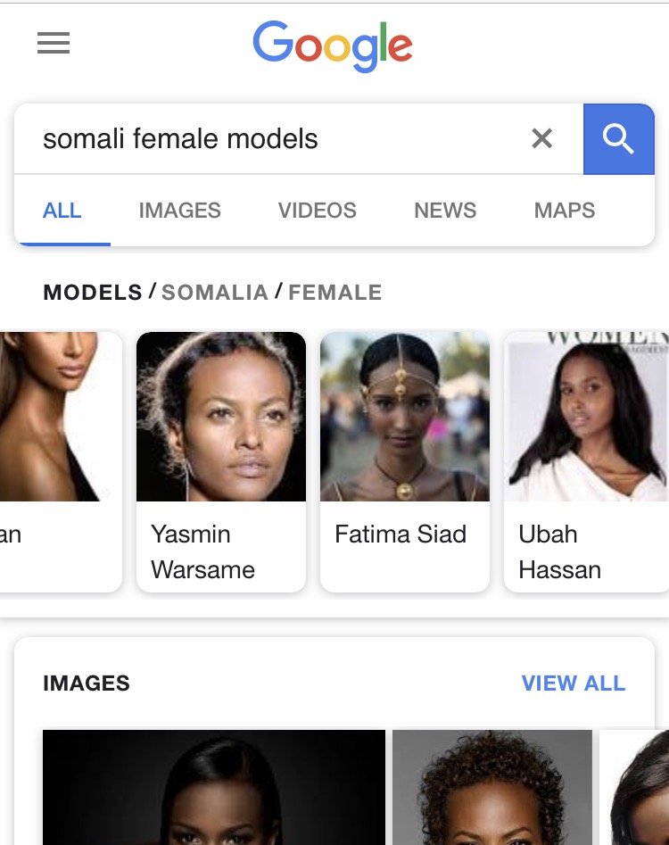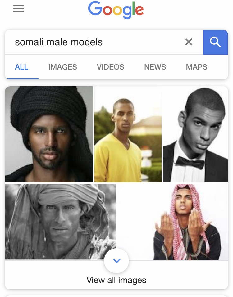 When you search up Somali male models, there's not a single name that pops up, it just sends you to images