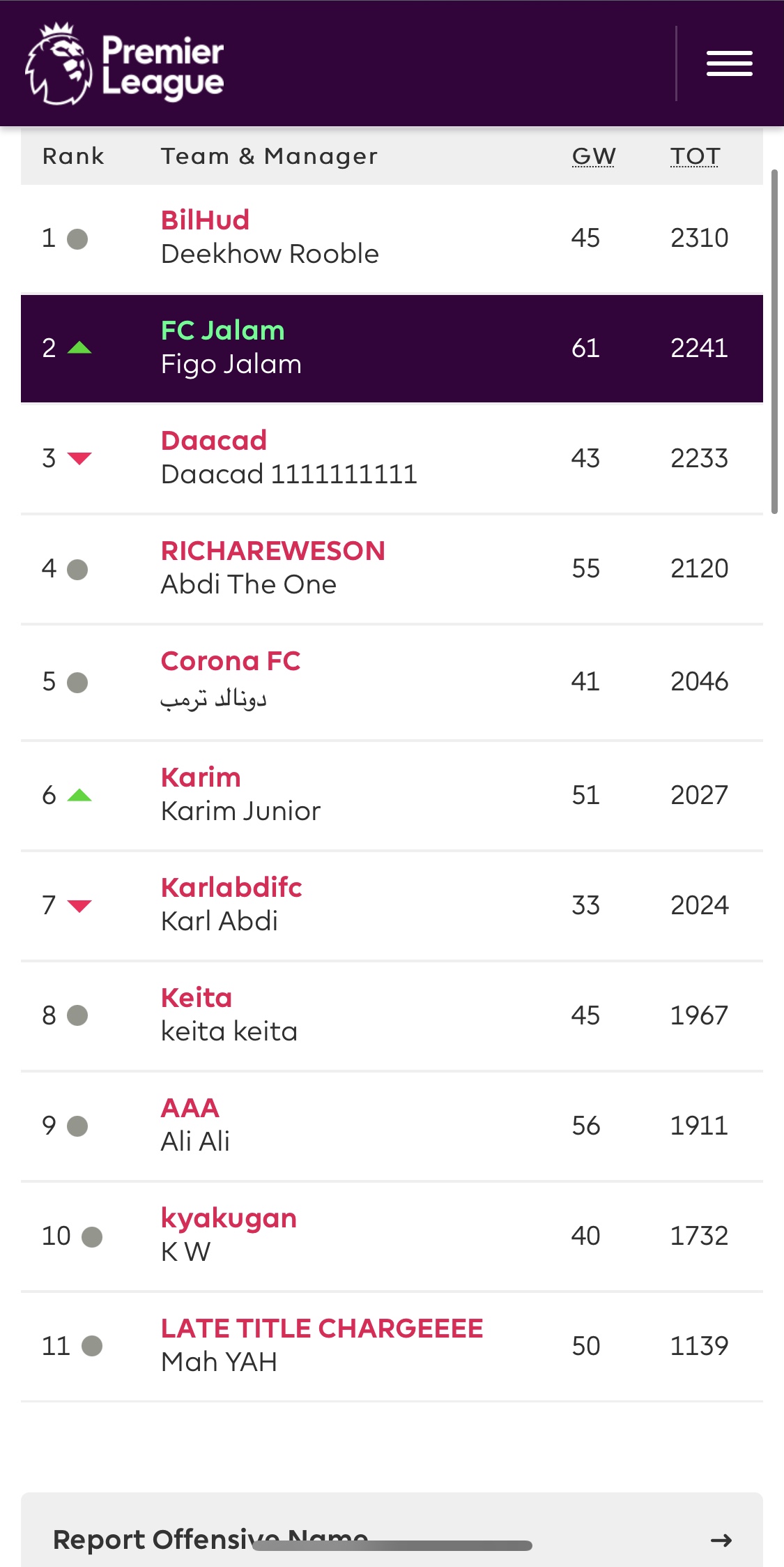Thanks and congrats for your second place finish bro. I wasted so many points on useless transfers tbh, I used all my chips early in the season... I made lots of bad decisions as I was a newbie to the game. I could've gotten more points than Corona and Richareweson if was a bit more cautious with my erratic transfers.