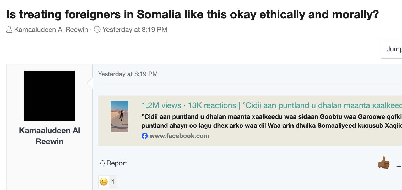 Not only have they partaken in all the above astutely put together by @Puntite queen , but there also seems to be an ongoing agenda to defame Somalis worldwide. Go on social media and it is not hard to find someone claiming a Somali identity while spreading mischief and discord among other communities.