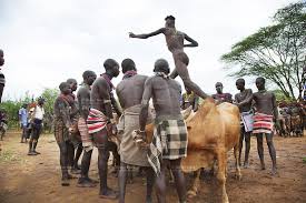 I think that is bull jumping tradition in Southern Ethiopia to show which man is the bravest. I saw it previously and also in my recommended when I was looking through Yemeni camel jumping traditions actually, but I forget the tribe name who do it though.