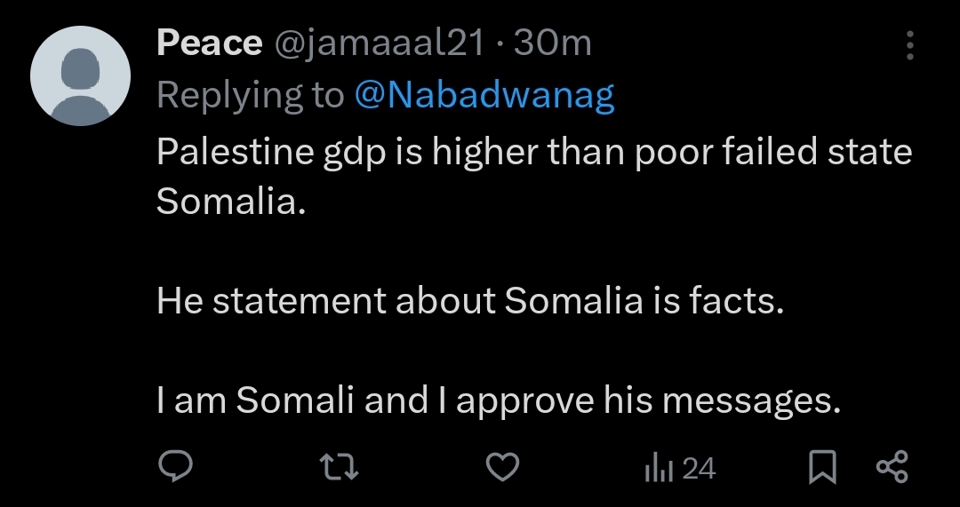 Its clear they're coping from what they've seen or don't want to be put off of supporting Palestine thus trying to disregard the ignorant remarks against Somalis and trying to play devil's advocate. We have more pressing matters we should call out for like illegal immigrants in Somalia who has nefarious intentions, the corrupt leaders selling the country and stealing money, terrorists, etc.