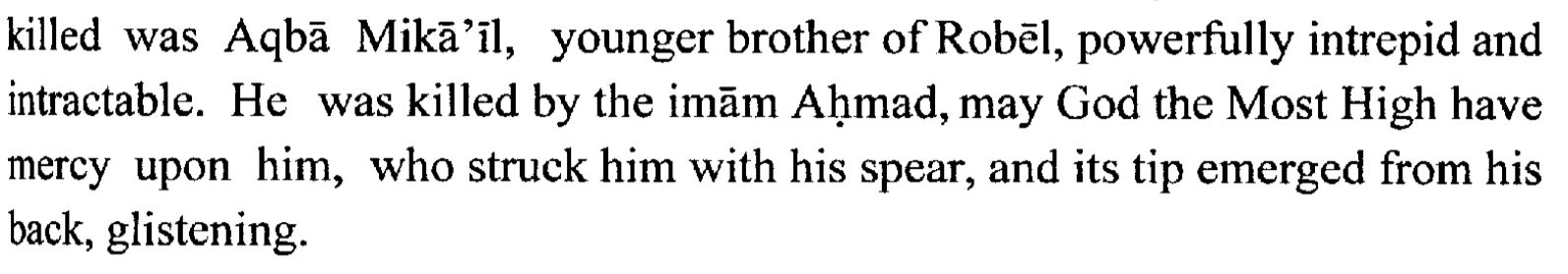 Aqba Mikaโil who was killed Imam Ahmed Gurey himself (Somali)