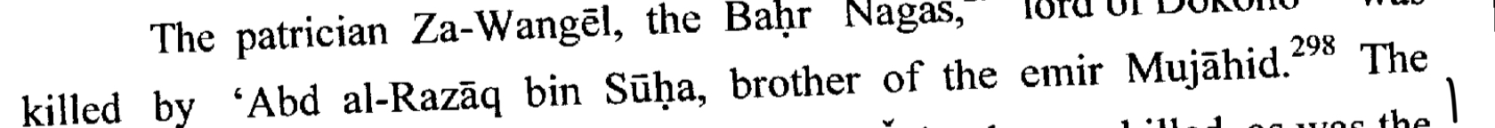 The biggest one is The King of Medri Bahri Za Wangel who was killed by the Uncle of Nur ibn Mujahid ibn Suha, Abdulrazaq ibn Suha. Since Nur ibn Mujahid was Somali his Paternal uncle was too.