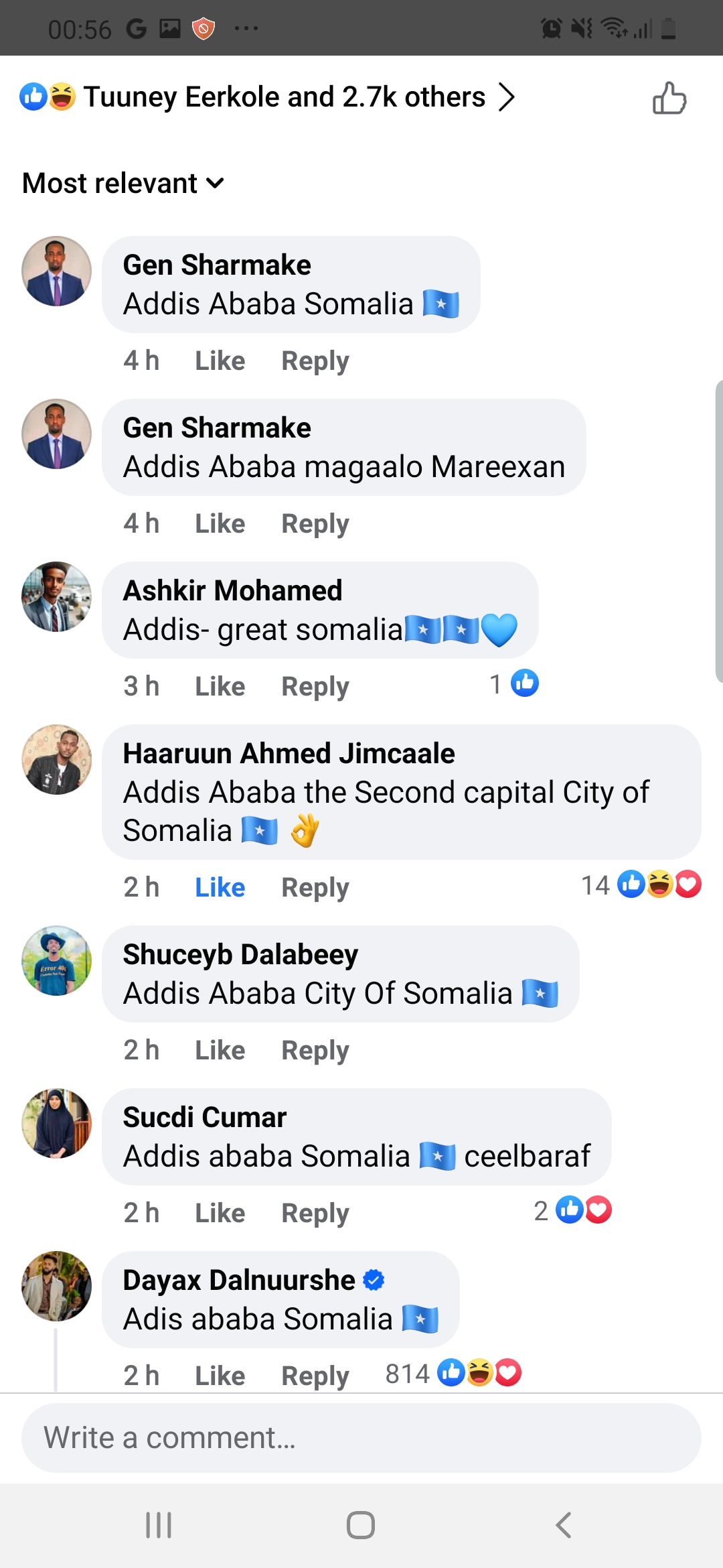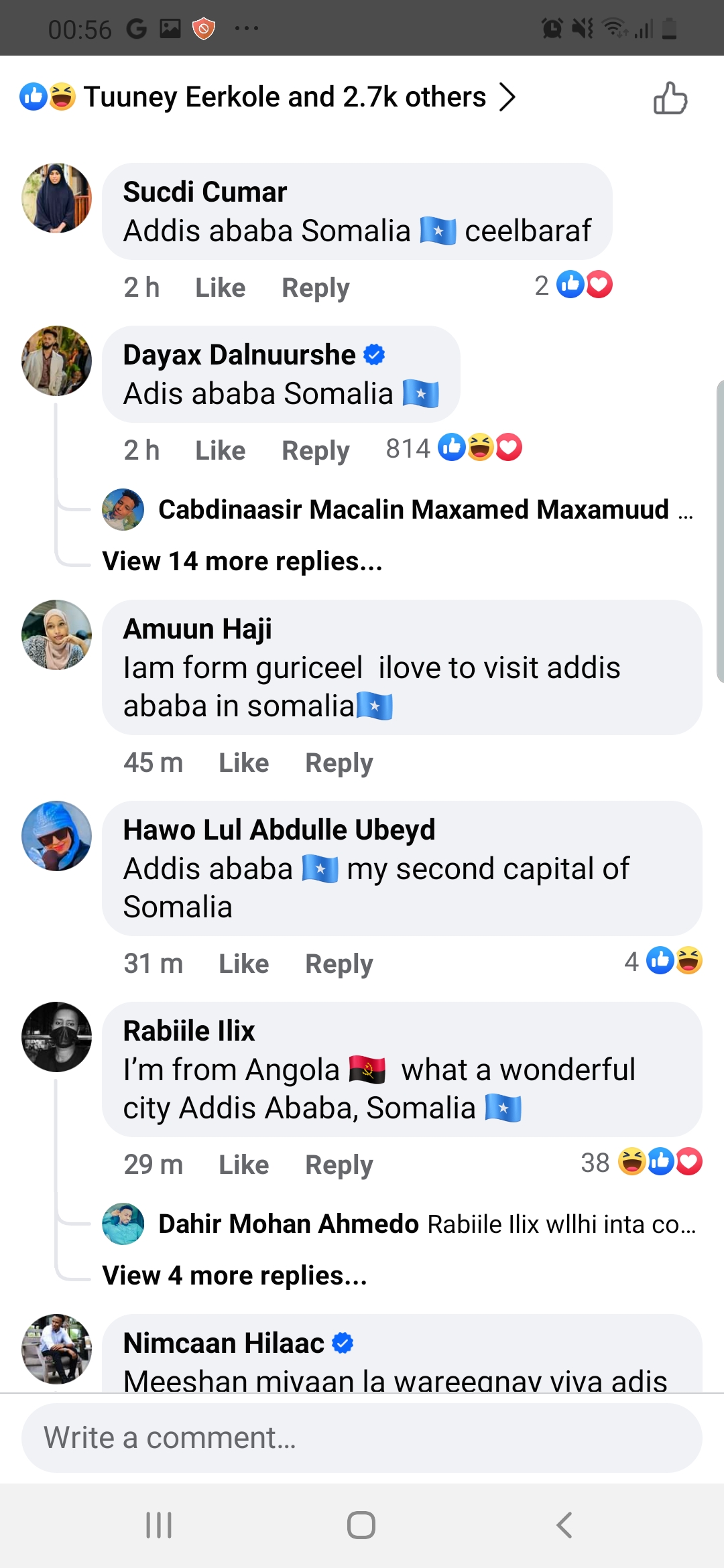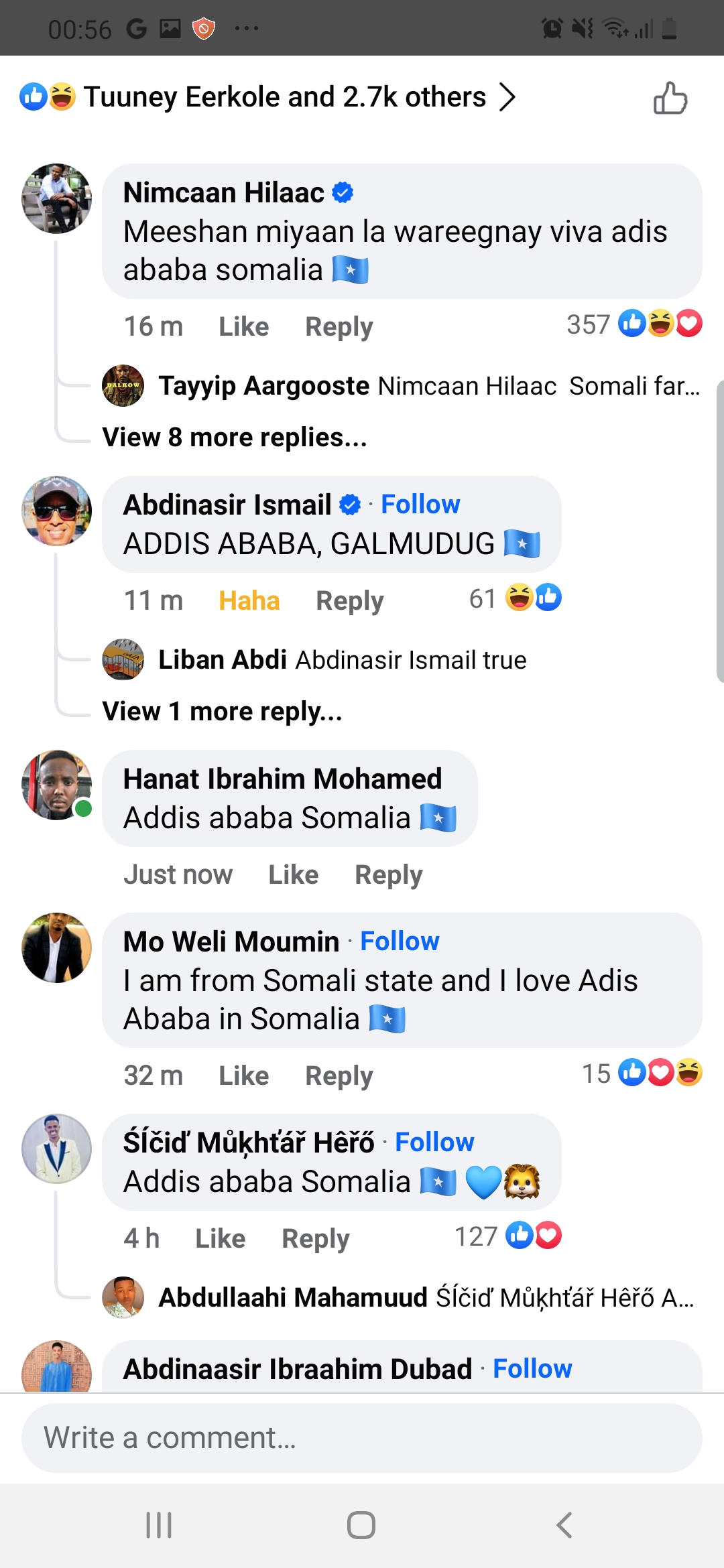 Look i told u somalis have turned qabikl fdk to national fdk .their was post on facebook today by african page about adisbaba see the entire coments.