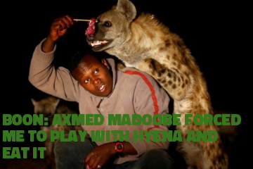 The only one who consumes insects in 2020 are your folk, cawaanti ku dhashay wasseNo i don’t think a carcass consuming bon is more noble than anyone, bon boy.