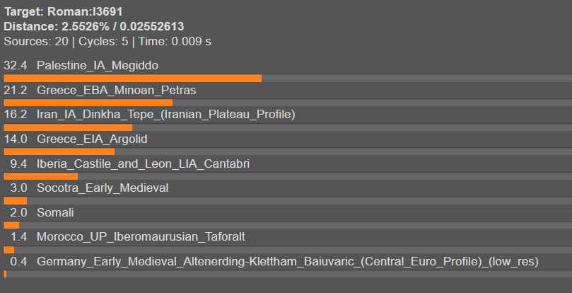This one is provincially closer to Jews (on the surface, not through substructure), only with extra MENA shift, as they too have an internal heterogeneous mixture that is not necessarily related to I3691, other than complex indirect alignment. Overall there is an affinity for Mediterranean and Anatolian shift, with some Iberian influence that could have come from some Punic-type introduction as we see the Iberomaurusian appear.